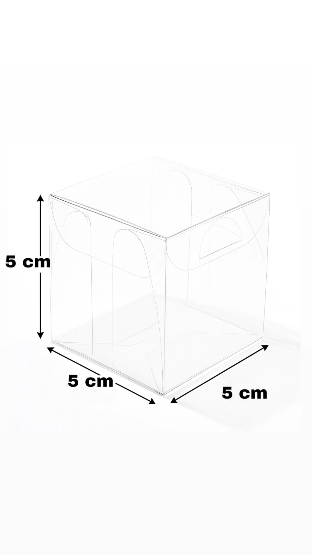 Caixa em Acetato Transparente crital 5x5x5 cm – Ideal para 2 Mini Macarons, Doces e Lembrancinhas Apresente seus produtos com elegância e praticidade! As caixas em acetato cristal transparente são perfeitas para doces finos, mini macarons, mini sabonetes, lembrancinhas e diversos tipos de artesanato, garantindo uma apresentação charmosa e profissional. Dimensões da caixa montada: Comprimento: 5 cm Largura: 5 cm Altura: 5 cm Espessura do acetato: 0,21 mm (210 micras) Características: Material de alta transparência: valoriza o conteúdo e confere acabamento sofisticado. Montagem simples e prática: apenas com dobras e encaixes — dispensa cola e ferramentas. Fabricação própria, garantindo qualidade e excelente padrão de corte e vinco. Tampa com sistema de abre e fecha, fácil de usar e reutilizável. Observação: As imagens são ilustrativas. Doces, laços e acessórios não estão inclusos. #embalagempremium #embalagemdequalidade #embalagembonita #embalagemsofisticada #caixacristal #acetatotransparente #embalagemprofissional #embalagemcriativa #embalagemdepresente #caixasparadoces #embalagemparadoces #caixaparamacarons #caixaslembrancinhas #embalagempersonalizada #caixasparafestas #caixadeacetato #embalagemtransparente #caixasparaconfeitaria #embalagensparapresentes #embalagemparadocinhos #caixaparabrigadeiros #caixaparabemcasado #caixasparaartesanatos #lembrancinhaspersonalizadas #embalagemparafesta #docesfinos #brigadeirosgourmet #festainfantil #lembrancinhascriativas